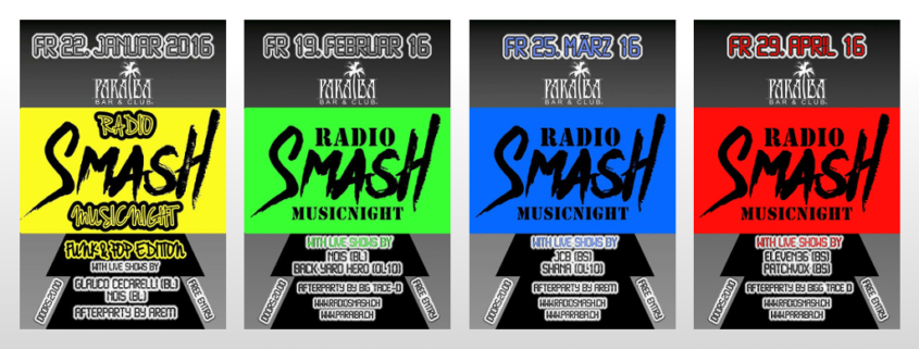 Den aktuell sommerlichen Temperaturen entsprechend findet die Smash-Music-Night erstmals im Freien statt. Auf der gemütlichen Aussenterrasse der Paraiba Bar lassen sich die Cocktails und Sommer-Ales in der Nachmittagssonne einnehmen, währenddem der DJ die passenden Funkhits auspackt – diesmal bereits ab 17 Uhr.